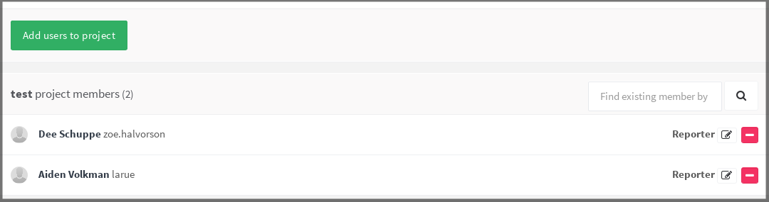 Once done, hit Add users to project and watch that there is a new member with the e-mail address we used above. From there on, you can resend the invitation, change their access level or even delete them.